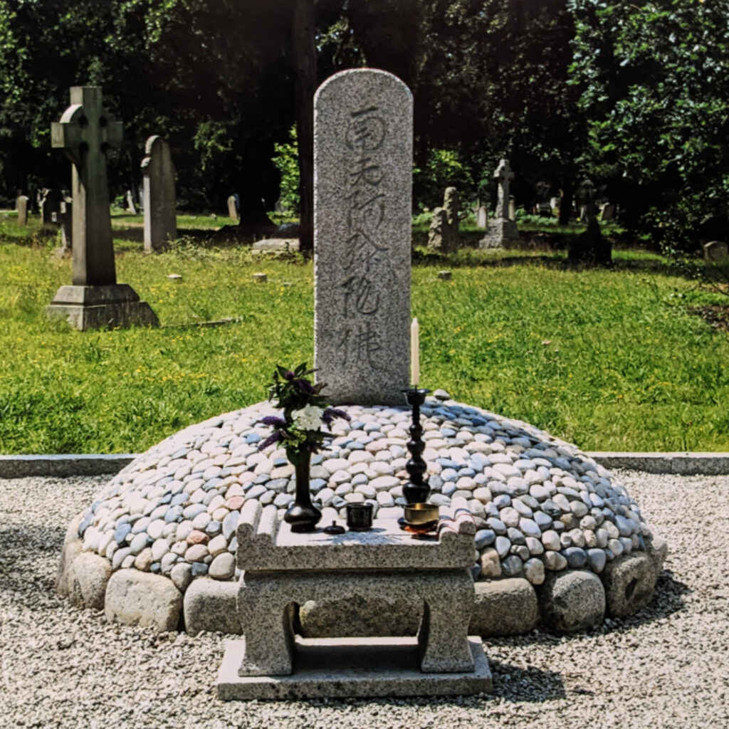 Soon after coming to Britain in 1993 to foster mutual understanding and spiritual exchange, Rev. Kemmyo Taira Sato learnt of Brookwood Cemetery and of the graves of four Japanese students who were buried there between 1866 and 1873. He was profoundly moved by the courtesy and compassion with which these four young men had been treated by their British friends, and ever since then, members of the Shogyoji-Three Wheels sangha have regularly visited the graves to express their gratitude to those who gave their lives for the modernization of Japan.